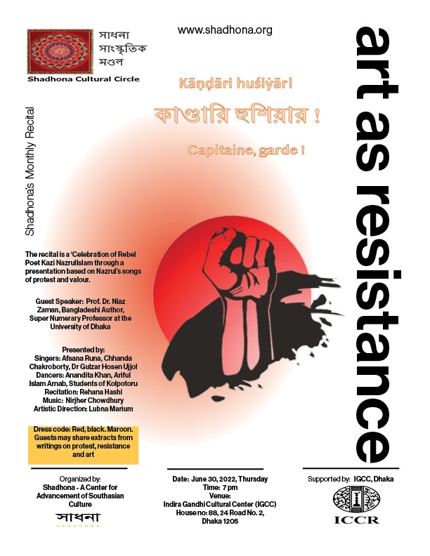7 PM, 30 JUNE, 2022 Indhira Gandhi Center Organised by SHADHONA ...